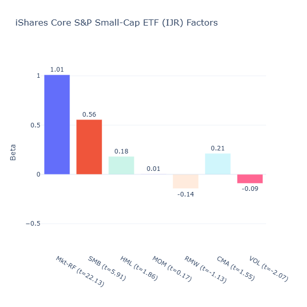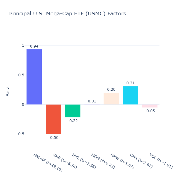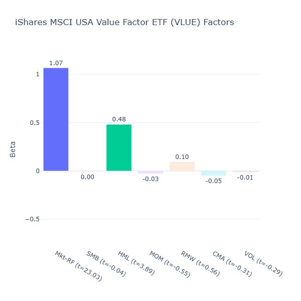 However, all of the above ETFs are long‑only, meaning they hold only the stocks they screen for and do not short the weakest names in a factor. As a result, market exposure is not removed and Mkt‑RF has the highest beta for all of them. This is not necessarily a bad thing, it means that while you tilt toward certain factors, you’re still getting a big part of the broad market risk and exposure in the ETFs, which historically has compounded upward over the long run.