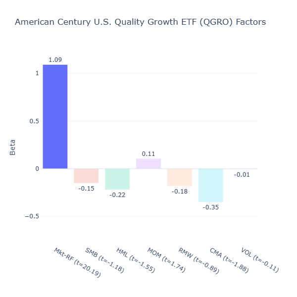 By contrast, QGRO and JQUA do not show meaningful exposure to any factor at the moment. In both cases, their methodologies appear to be too broad or multi‑dimensional to produce a strong, consistent tilt.