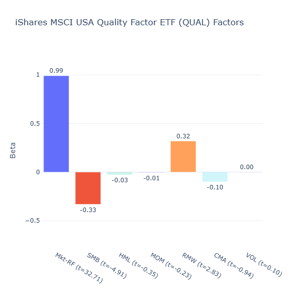 In this group, QUAL is the only ETF that currently delivers a clear, measurable tilt toward the quality factor in academic terms, profitability (RMW). It leans into large companies with stable earnings and strong balance sheets, making it a straightforward way to capture the quality premium.