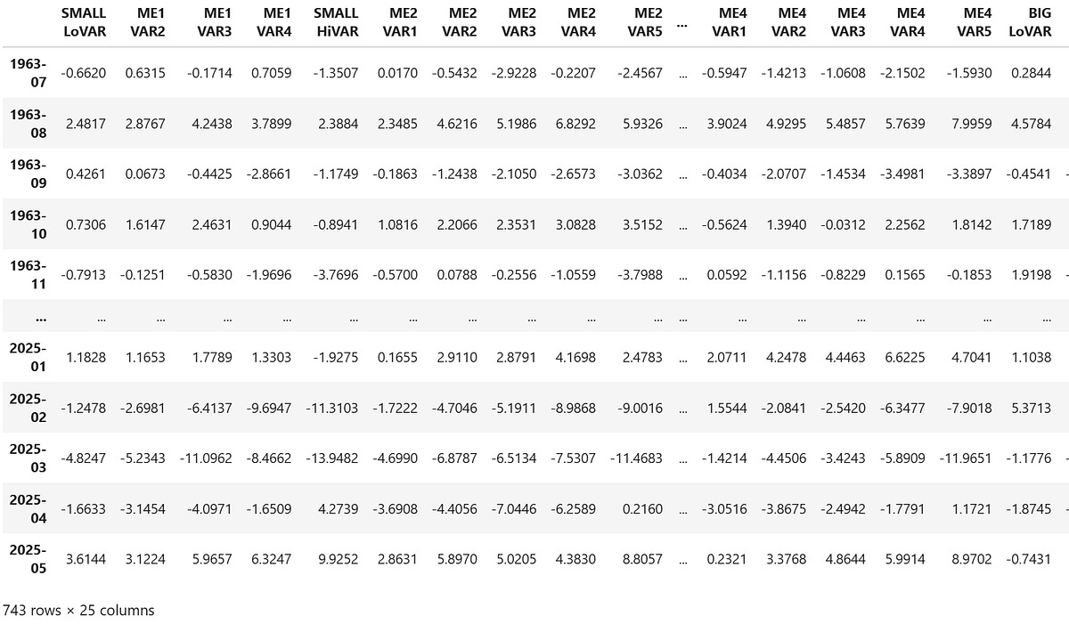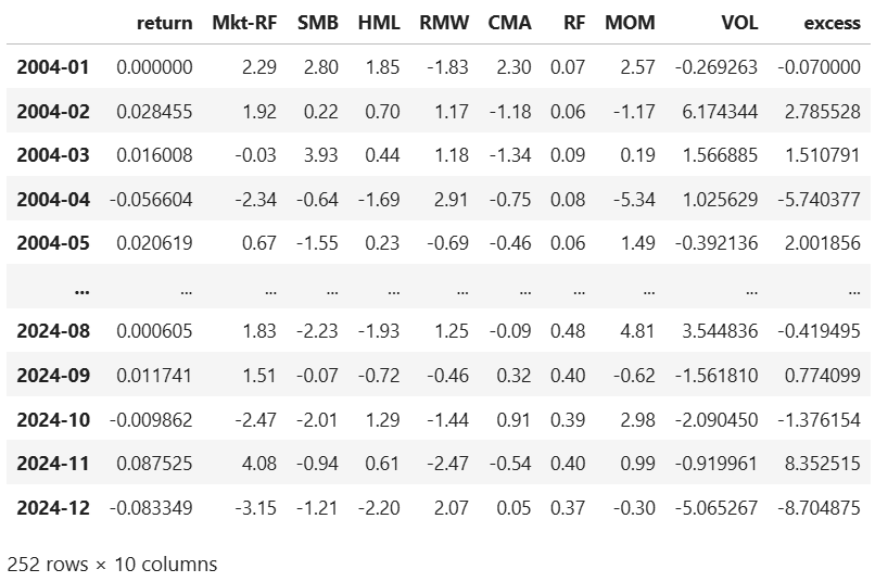 df_factors.index = df_factors.index.to_period("M") # change to monthly period