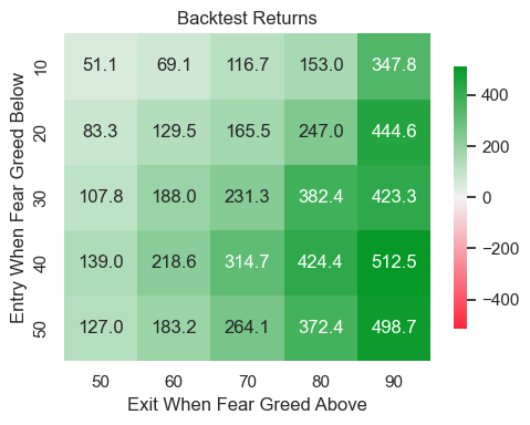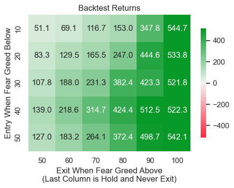 Note: In the heatmap above, another high performing strategy seem to correspond to Entry when FGI < 50